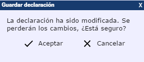 Al abrir una declaración o crear una nueva se perderán los cambios no guardados en la que hubiese cargada previamente: