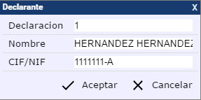 Haciendo click en el botón información de usuario se abre un formulario con la información del declarante: